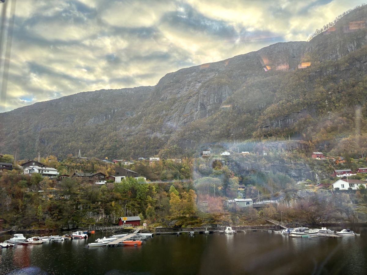 ベルゲンからの列車は世界各国の乗客で絶景をカメラにおさめていました。マナーが悪い人はいませんでした。天気がイマイチでしたが移動が長かったので濡れずにすみました。列車を降りてVossで船に乗る前にレストランで昼をとったのですが、どれも美味しくて満足です。ノルウェーサーモンをおすすめします。初めて行っても迷うことはなかったので違う季節にまた行きたいと思います。