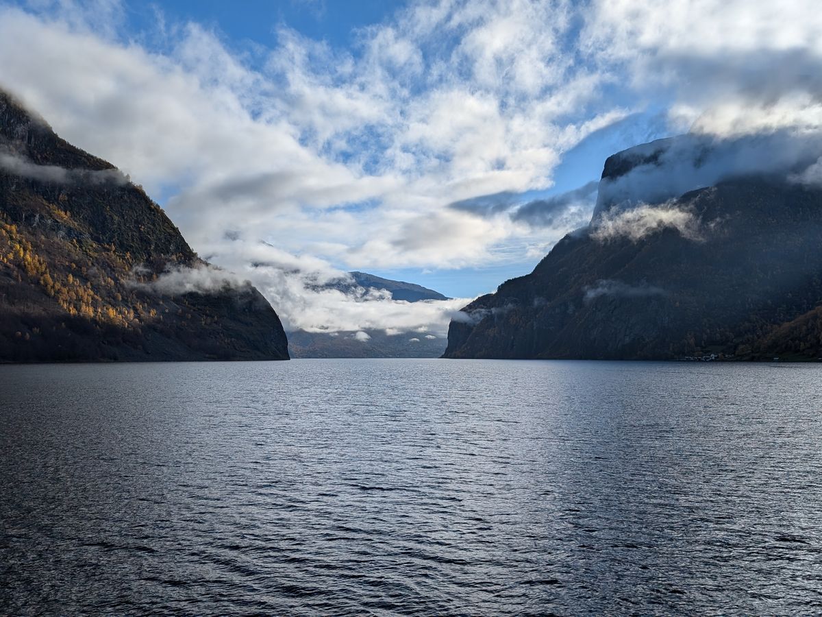 やはり一番の魅力はクルーズでのフィヨルド体験で、当日は曇りだったため、最初は雲や霧に覆われていたものの、雲の隙間から徐々に晴れ間が見え、ついには最高の景色を楽しむことができた。