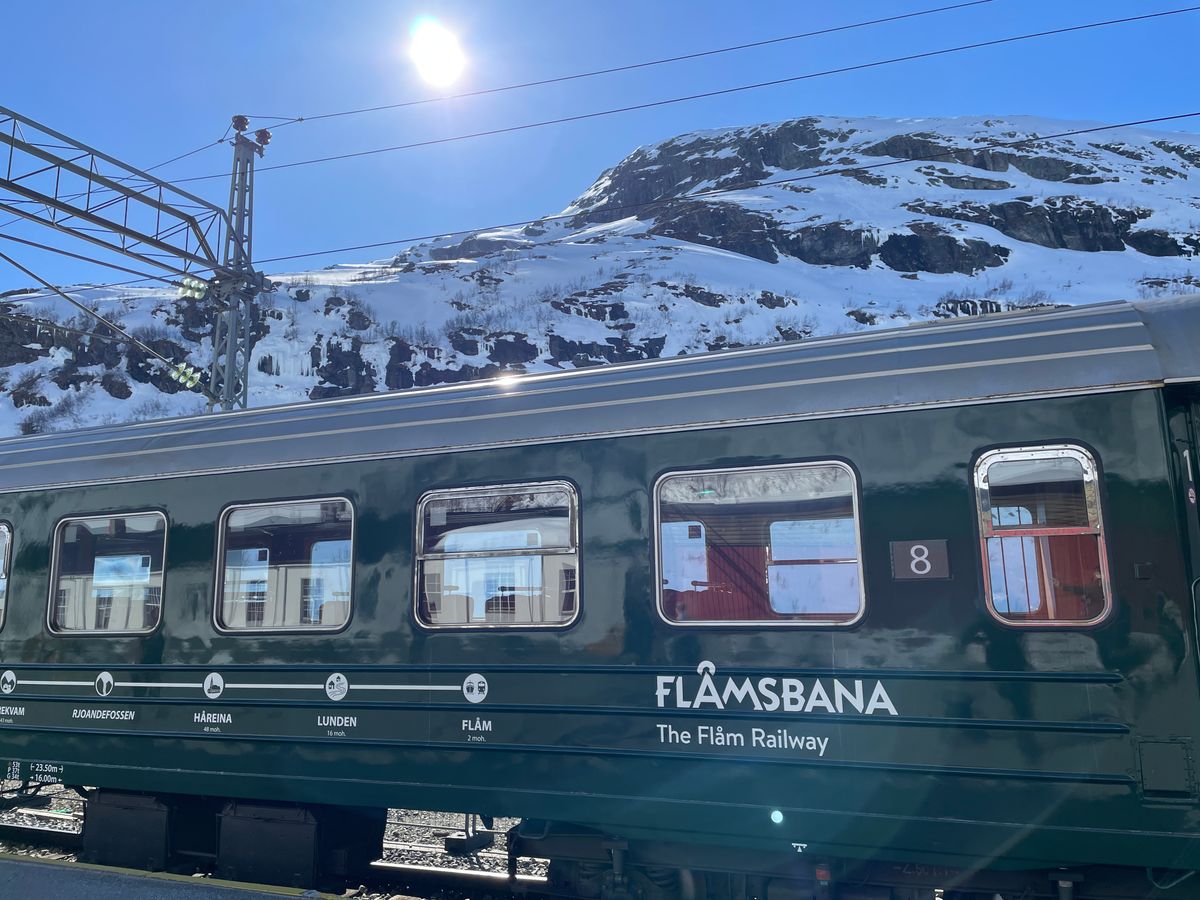 雨がすごく、途中から雪も降ってきて前半は残念だと思っていたけど、船あたりからフィヨルドが見え始め、フロム鉄道では広々とした車内から雪のフィヨルド景色を楽しめました。