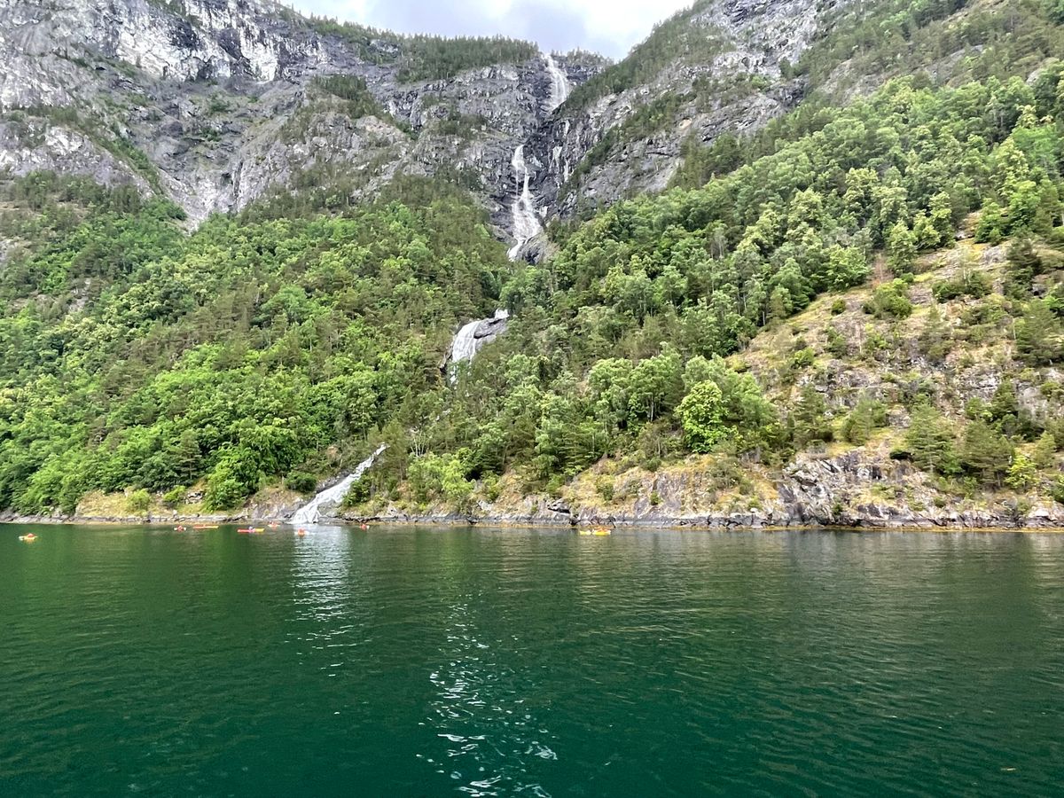 フィヨルドの景色は圧巻で船では途中滝などで止まってくれるので写真も撮りやすいです。