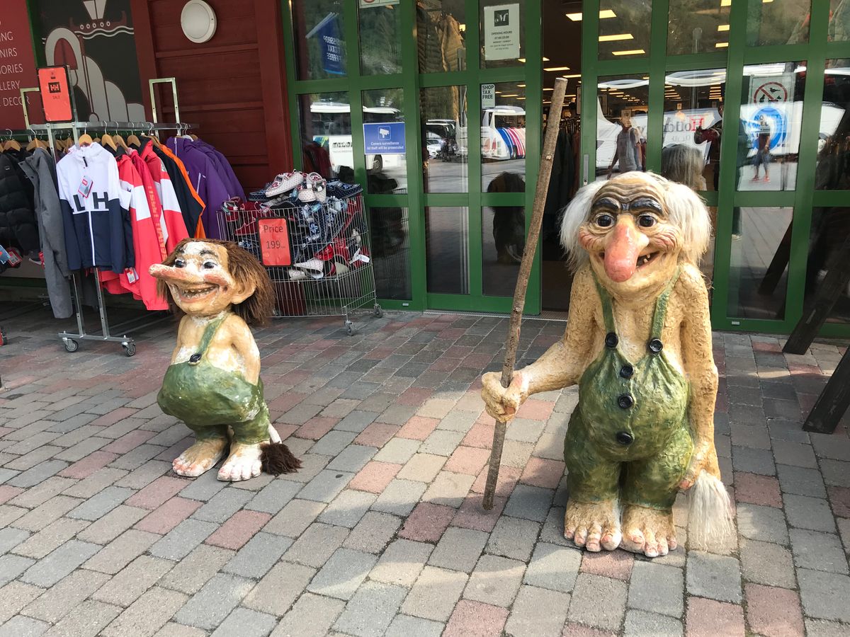 朝オスロ駅に行くと、ベルゲン行きの列車はすぐにわかりました。その前で何人も待つ人がいて、大体の人がこのツアーではないかと思われました。ミュルダールでの乗り換えもスムーズで、フロム鉄道まではなんとか日も出ていました。フロムでの船への乗り換えは少し時間もあったので、周りのお土産屋さんを回ったり博物館の行ったりして過ごしました。品揃えのよいお土産屋さんが少し離れたところにあります。