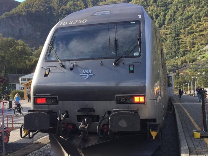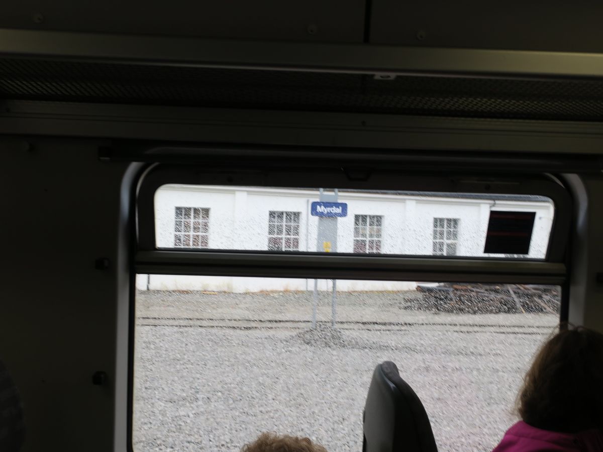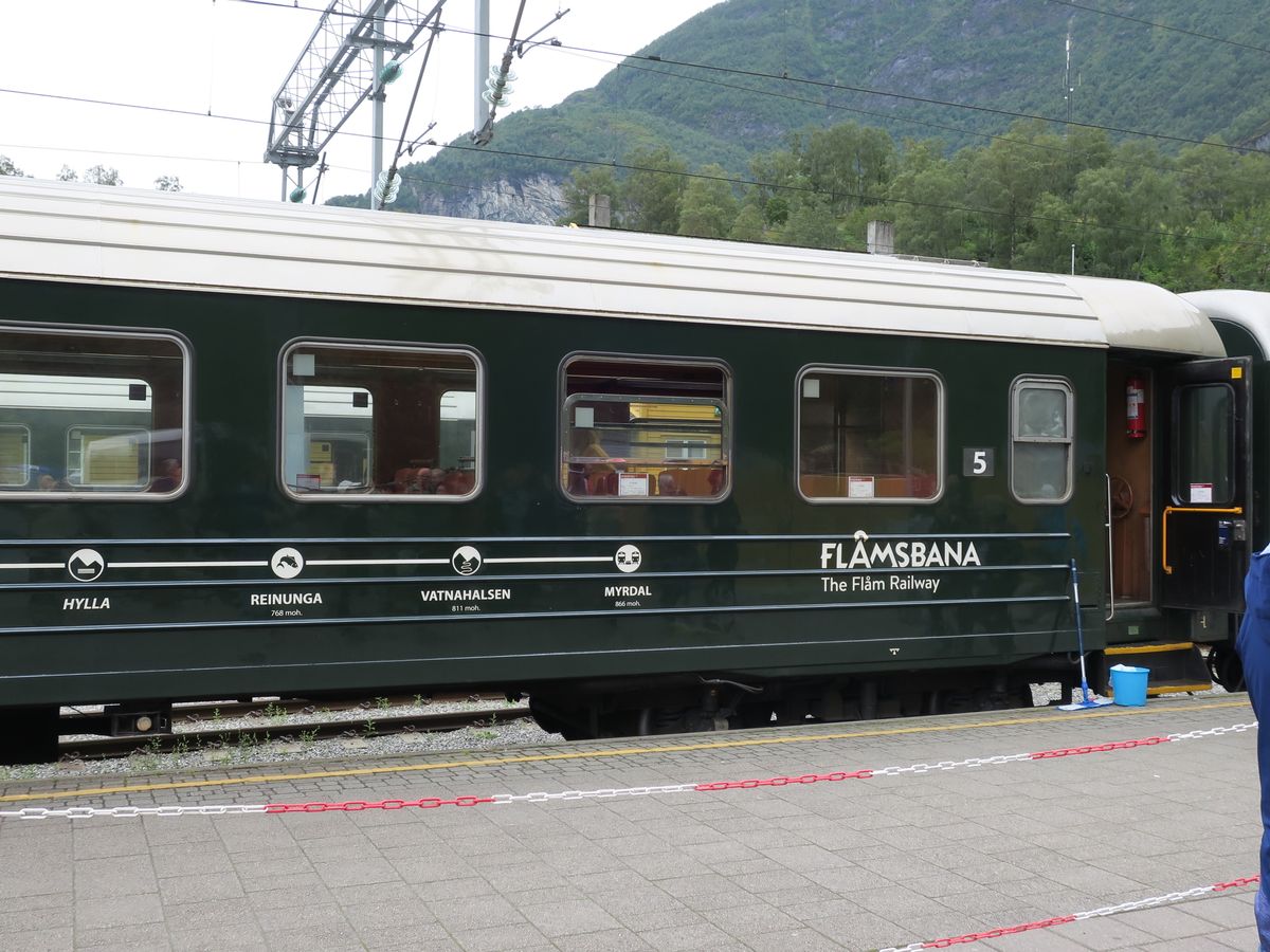 一番最初のベルゲンからミュルダールの電車では、進行方向と反対向きの座席ばかりでした。進行方向向きの数少ない席を取りたいなら30分くらい前についていると良いでしょう。また注意しなければならないのが、電車がベルゲン駅ホームで待機しているとき、駅の入り口から見て奥半分の車両に乗ること(つまり頭側)。そうでないと途中から切り離されて、違う場所に行ってしまいます。