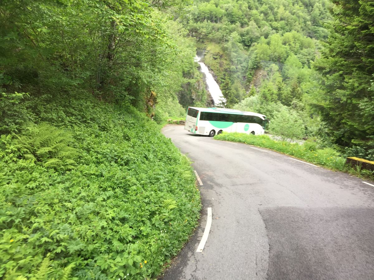 ④gudvangen→voss 《バス》途中のstalheimskleiveが絶景でヘアピンのような急勾配をバスが崖っぷちを下るのがすりるがある。個人的にここが一番思い出に残る場所。左右どちらでも景色は同様。最前席に座るのがお勧め。
