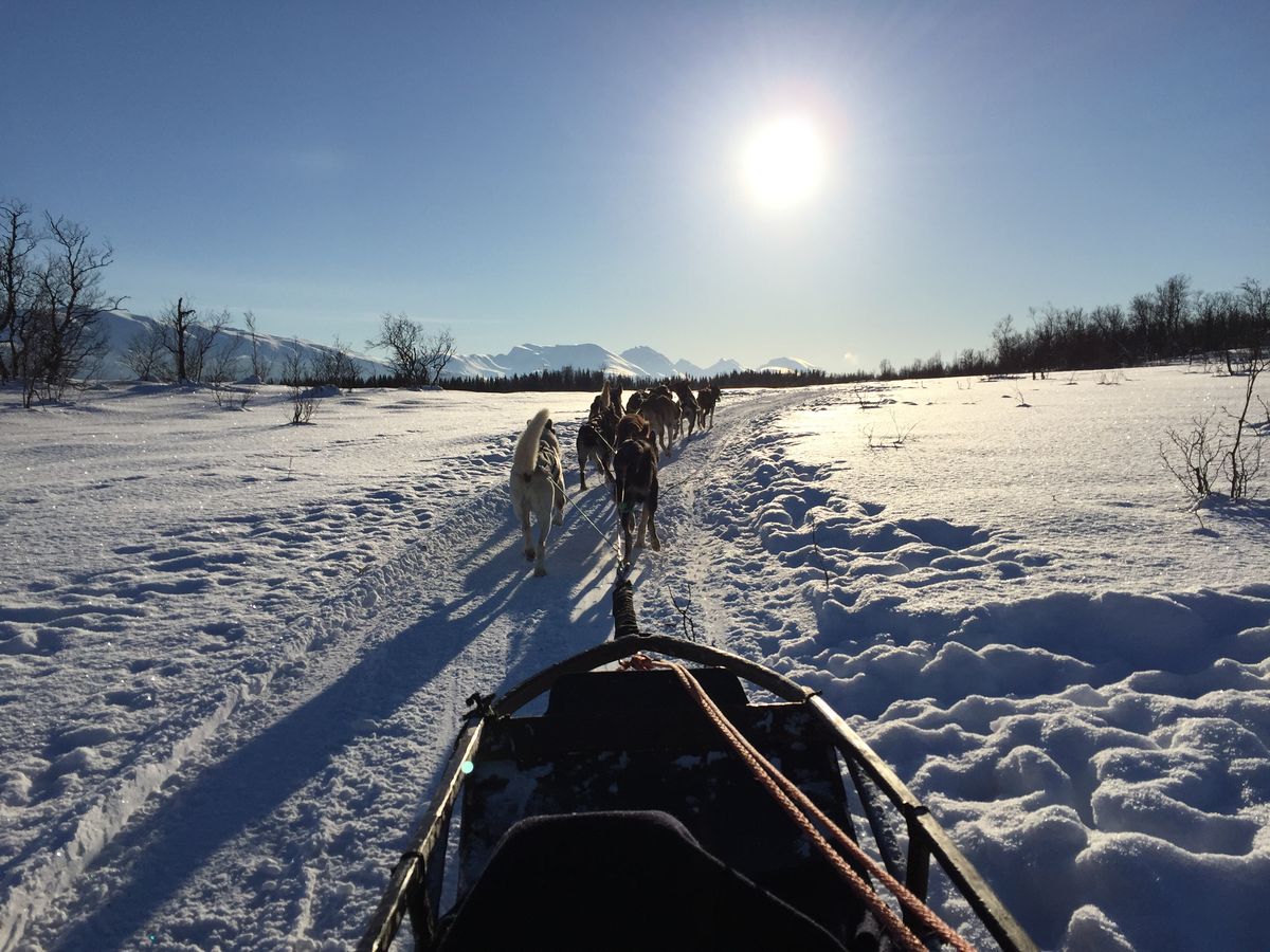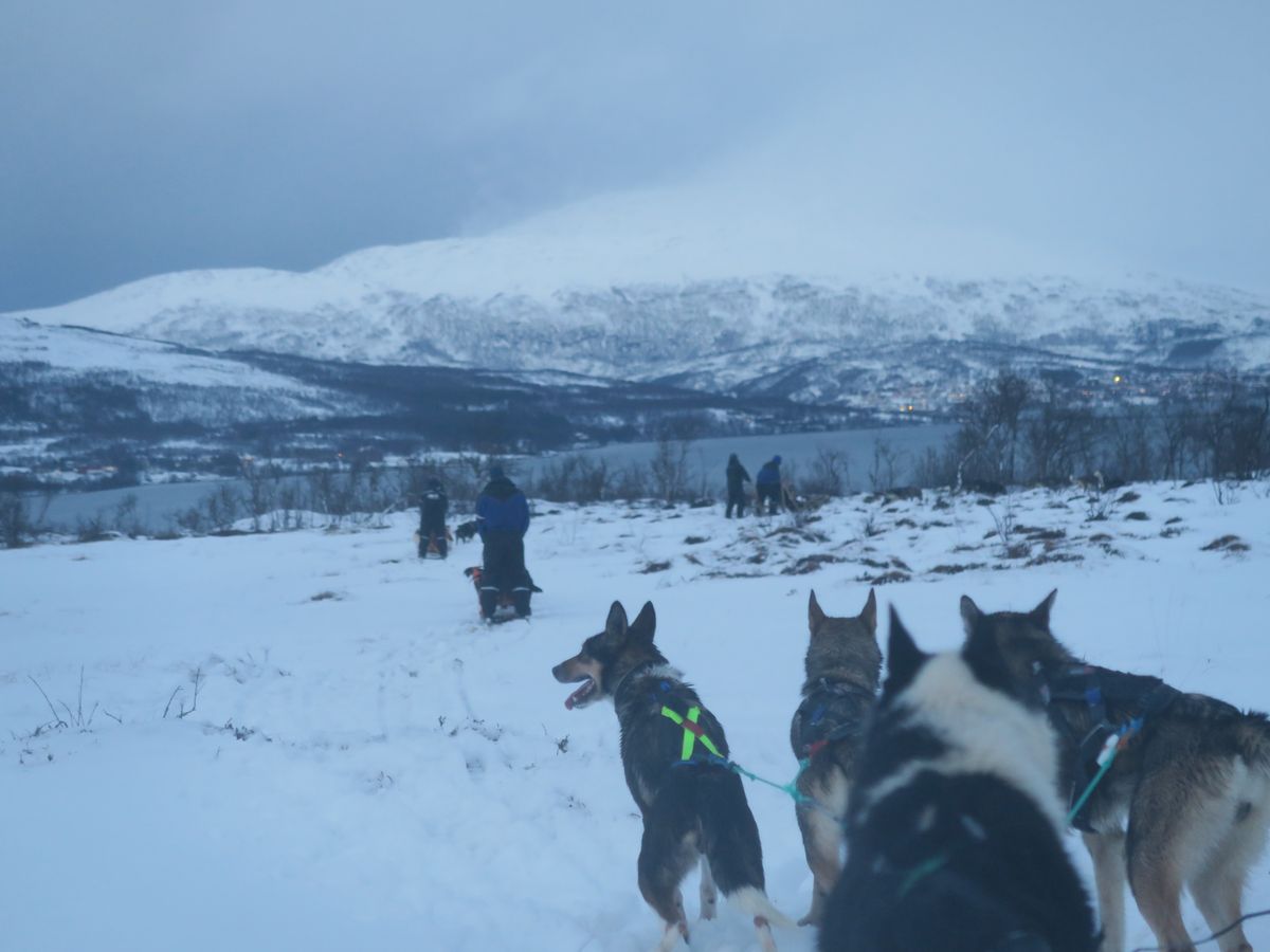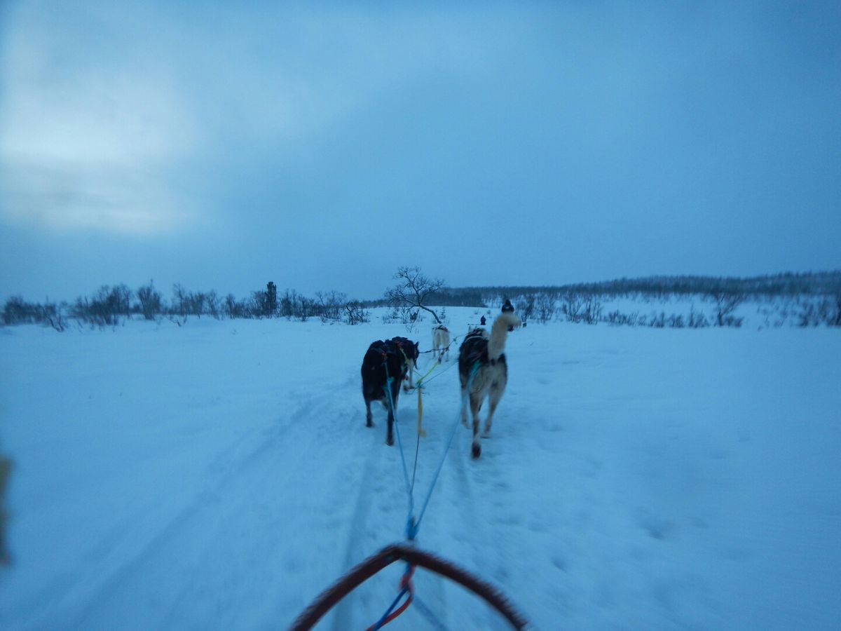 朝は9時半からなのであまり急がなくてもよく、集合場所も都市部のわかりやすい場所にあったので迷うことはありませんでした。現地では、ガイドの方が犬ぞりの乗り方も教えて下さり、安心して体験できました。説明は全て英語ですが、わかりやすく説明してくれることと、操作方法もいたって簡単であったためなんら問題はありません。体験コースは雪山の銀世界を堪能しながら2人一組で交互に操作するというもので、片方はかごのようなものに乗ってリラックスしながら犬たちの走っている姿を後ろから楽しめます。犬ぞりのスピード自体としてはさほど速くないので走りながら2人で会話を楽しむこともできます。また、対岸に都市部があるため、綺麗なオレンジ色の灯りの景色を眺めて楽しむことも一つの楽しむポイントです。ツアー終了後は犬との触れ合う時間が設けてあり、犬たちが非常に人懐っこいため、もちろん犬好き方もそうでない方にも犬たちの可愛さを存分に味わえるのでオススメです。最後に昼食として、伝統料理のサーミというスープとガトーショコラケーキを楽しむことができます。美味しかったです。