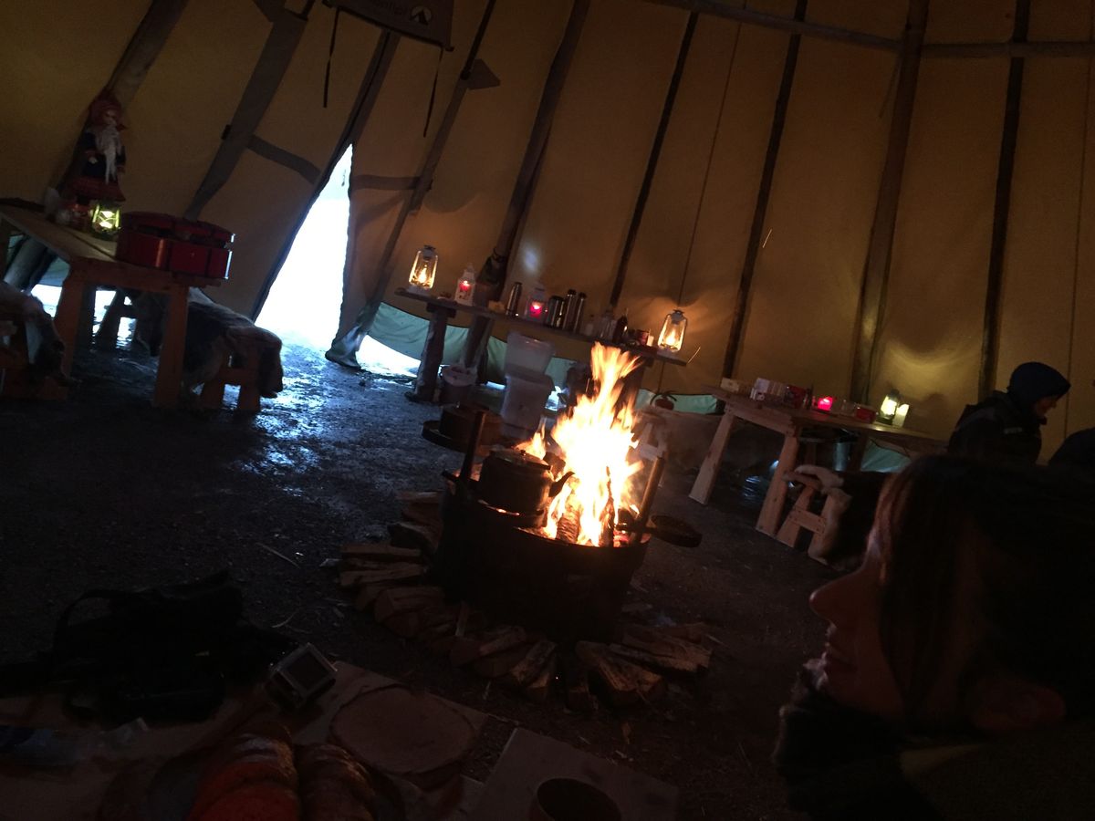 暖かいテントの中でスープとパンを食べ、サーミ族の歌を歌ってくださいました。