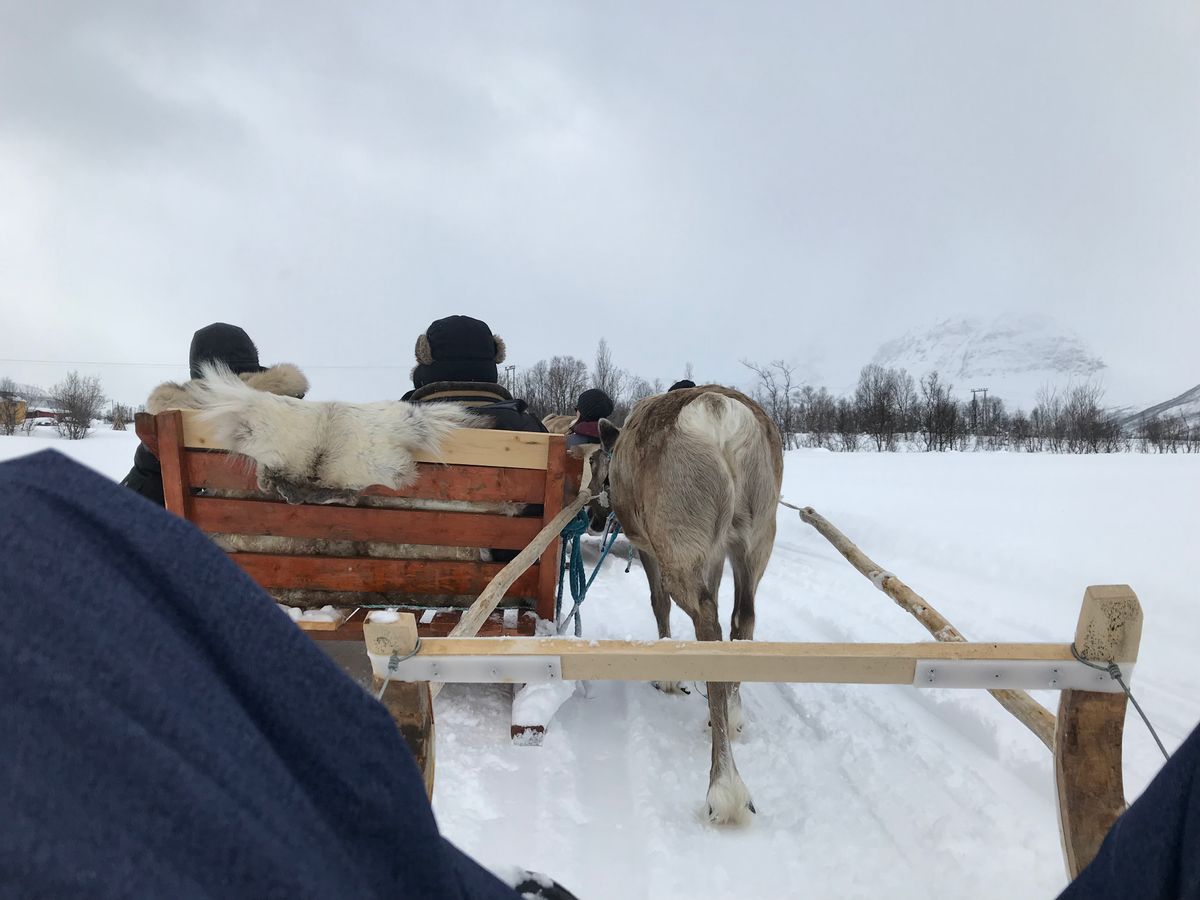 ソリが一番前で、目の前はソリをひくトナカイと雪原だけという絶景を味わえました。また途中隣にトナカイを操るサーミの方が乗るので(だから一人参加が一番前)、お話できたしトナカイは可愛いし楽しかったです。