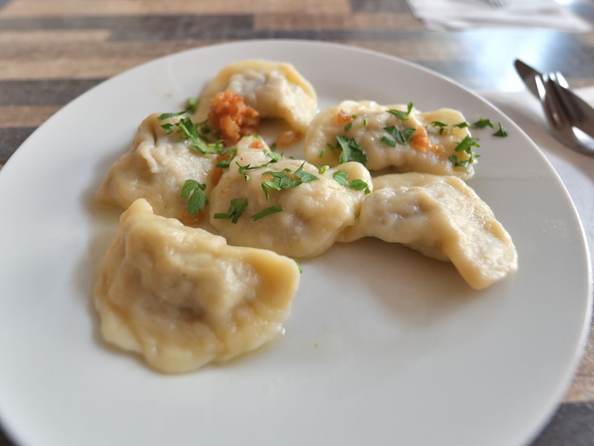 夕食ははガイドさんと可愛い女性ドライバーさんと一緒に、東ワルシャワにある地元の人が利用するミルクバーでピエロギを食べました。フィアットは古い車ですが、味があって良かったです。