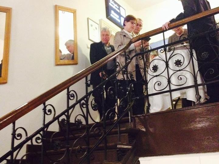 場所は、グラウンドフロアに両替所がある普通の建物で、やや狭い階段を最上階まで上がったところです。30分ほど早く着いたので、一番前の列に席を確保することができました。