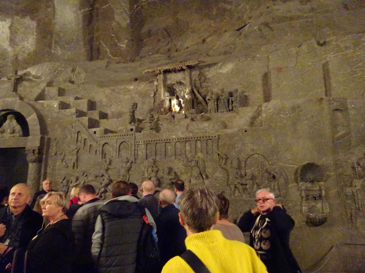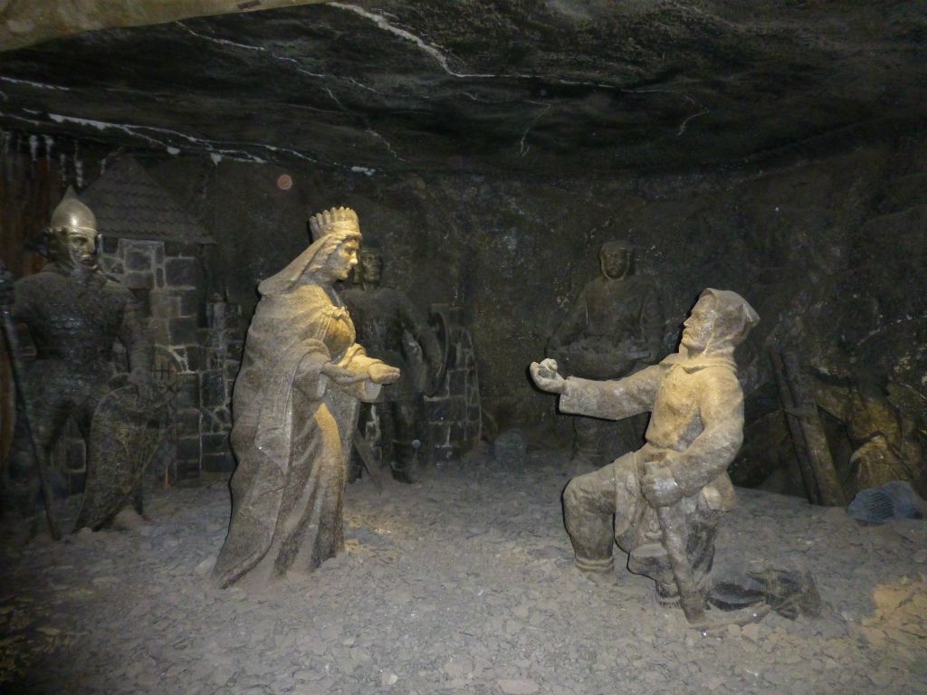 10時前、岩塩抗前に到着。ポーランド人たちのツアーに交じって、岩塩抗ツアーが始まりました。先頭で案内したのは、元は坑夫だったという男性。暗い坑道を進みましたが、まわりもすべてが岩塩。作業の様子がわかる幾つかのスポットで止まり、男性の説明を受けた末に、2時間のツアーの最後は、岩塩でつくられたキリスト像などが並ぶ礼拝堂。厳かな気持ちになりました。