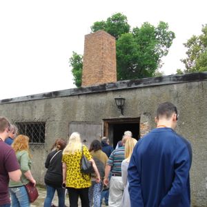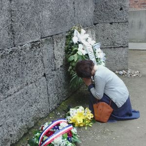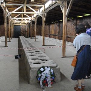 主に政治犯が銃殺された「死の壁」。道中に花屋さんに寄ってもらって花束を買い、妻が花を捧げました。ガス室も残っていて遺体は焼却炉で焼かれ、灰は農場の肥料にしたり、川に流されたということです。