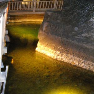 岩塩の採掘は700年以上続き、坑道の総延長は約300 km、空洞の数は2,000以上、また最深部は327 mに達する広大な地下採鉱場です。公開されているのは深さ135mまで、20以上の部屋や礼拝堂を巡る約3.5 kmの見学ルートを見て回りました。見学ルートの各所では採鉱作業の様子の再現や、実際に使われていた梯子やトロッコなどを目にすることができます。神秘的な地底湖(塩分濃度30%)や採掘後の空洞を利用して創られた地下の礼拝堂はその大きさに目を見張りました。