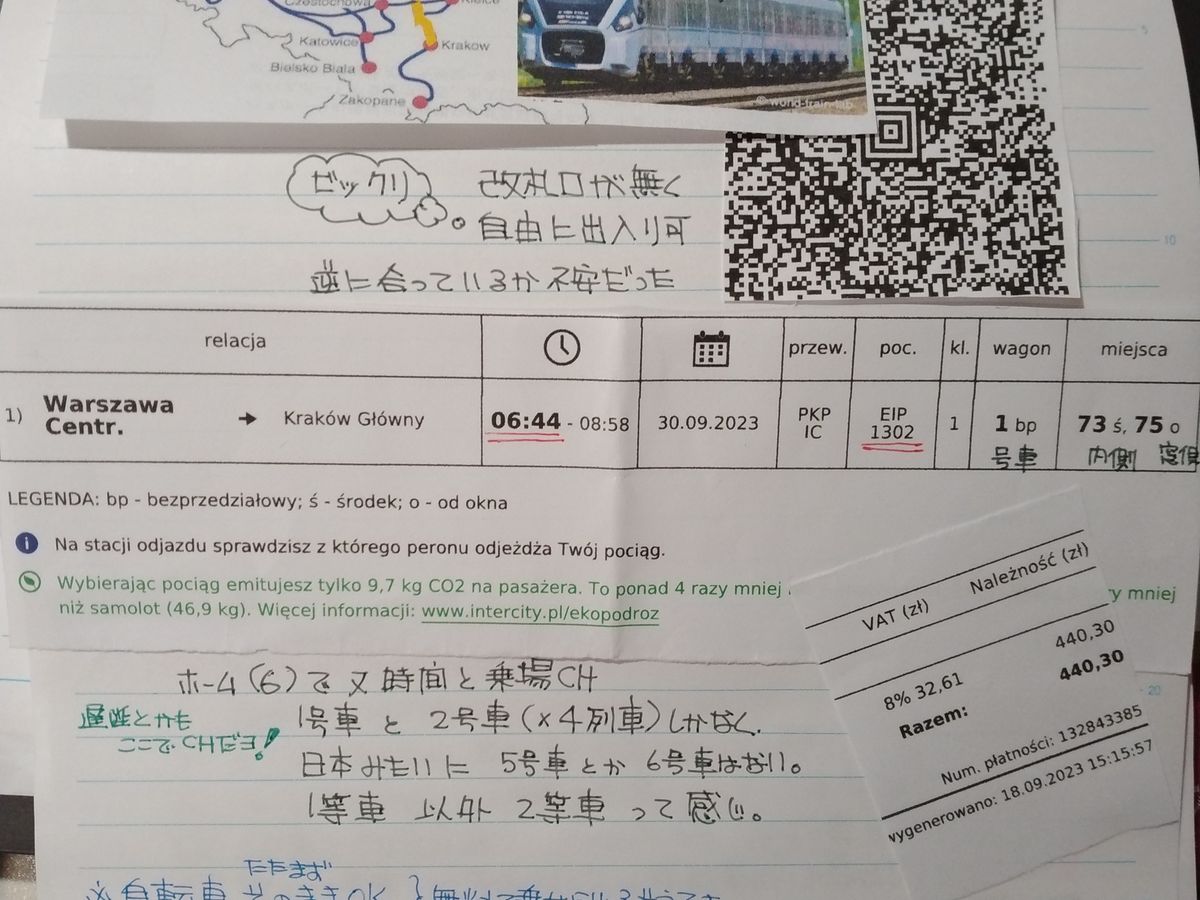 強いて改善してもらいたい点を挙げるとすれば、列車の電子チケットの読み方を事前に説明しておいてほしいということくらいでしょうか。私たちはワルシャワに住む友人に教えてもらっていたので戸惑いませんでしたが、チケット上には英語表記もないため、書いてあることの意味がわからず、乗車時に焦る人もいることと思います。この点が改善されたら100点満点のツアーになると思います。