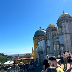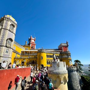 最初の目的地はペーナ宮殿。9時前には到着。駐車場から宮殿の入口まで歩いていくかシャトルバスで行くか聞かれ、我々のグループは全員バスを選択。宮殿の入場の列に並びながら、交代でシャトルバスのチケットを自動券売機で購入した(1人往復で3ユーロ)。