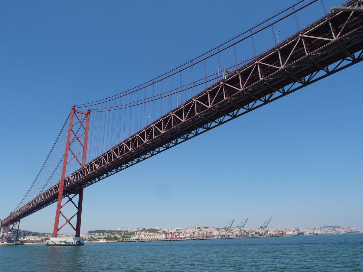いざ、水門橋を右手に眺めながらシントラへ。建設にいたる背景の説明もしてくださいました。
