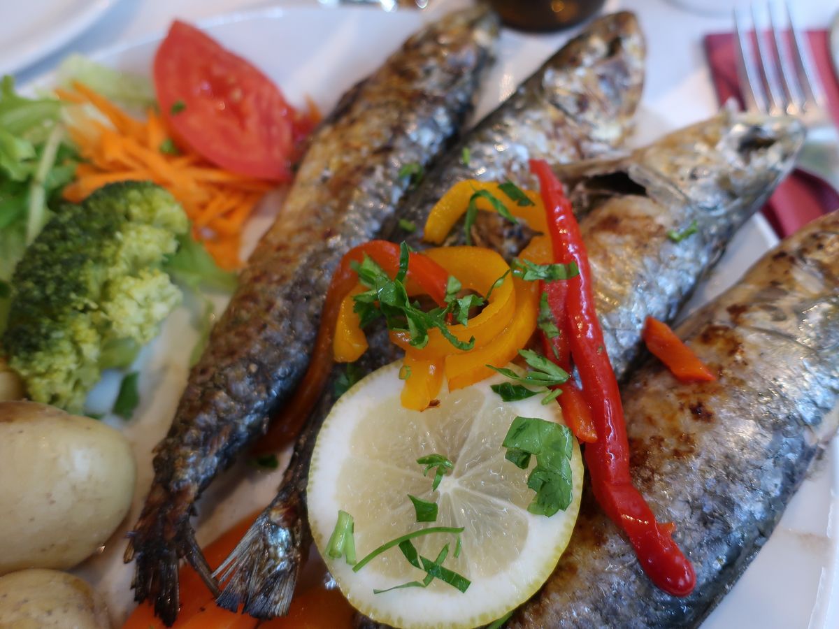 ナザレでは、坂の途中にある、地元の人達で賑わっているレストランに案内してくれました。私達は、魚介のスープ、イワシの炭火焼きや アンコウのおじや、ポルトガル風プリンを選んで注文。