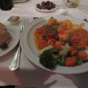 ただ、料理はあまり期待してなかったのですが、メイン料理が個人でポルトガル料理の店に行った際にほぼ見ないようなたらのクリーム煮?と人参やインゲンの茹でたものが添えてある料理。味もそんなによくなく、一緒に鑑賞していた別のツアー客はほぼ手をつけてない状態でした。