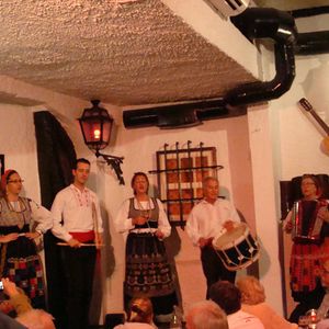 リスボンでの一夜、ポルトガル民謡ファドを聞きながらのディナーに参加しました。ファドは歌手のソロや、グループの踊り付きの合唱等、なかなか興味深いショーでした。ディナーもボトルのワインが付いて、大満足でした。