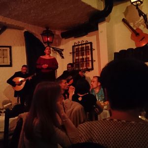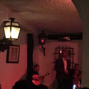 一人旅だったので、夜中まで出歩くのはちょっと、と思っていたところこのツアーを見つけて参加しました。帰りは23時すぎになりましたが、ホテルまで送ってもらえたので助かりました。ファドは初めて聞いたのですが、楽しめました。写真を撮るのも忘れて聞き入ってしまいました。食事は、スープとメインとデザートでしたが、ワイン(赤と白)と水は飲み放題のようでした。いろいろ苦労することなく楽しめるのでよかったです。