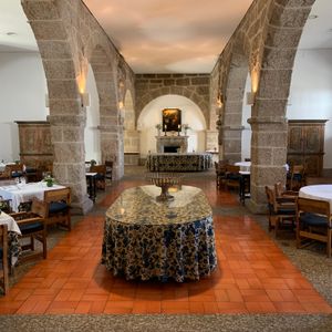 歴史ある国営ホテル「ポサーダ」のレストランは、当日は午後1時からのオープンだったのですが、ドライバーに届いていた情報は正午の予約。