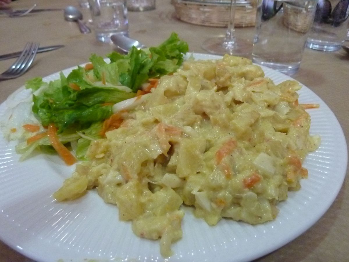 昼食は、スープ、メイン、デザート、飲み物。今までのレビユーを見ているとその時々によって行くレストランは違うのかな・・という印象です。私はメインは魚を選びました(バカリャウのグラタン風→美味しかったです)。