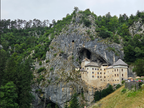 午後は、一旦リュブリャーナに帰ってイギリス人など4人を乗せてポストイナ鍾乳洞と洞窟城に向かう。昼食はブレッド湖畔のファストフード店にて20分ぐらいの休憩あり。ポストイナ鍾乳洞もシーズンで大混雑。英語ツアーに組み込まれて2時間ほど見学。8月上旬というのに洞内はかなり寒い。寒がりの人はトロッコ乗車前にポンチョみたいな羽織ものを貸してくれるので借りたらいいです。この鍾乳洞は日本にはないスケールでびっくりしました。その後、ツアーのバスで洞窟城へ。1時間ほどガイドさんの案内で見学。