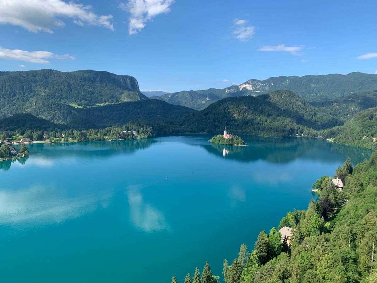 ブレッド湖は運よく快晴で湖のエメラルドグリーンが綺麗すぎでした。暑すぎることもなく快適に散策できました。小鳥と鐘の音が響き渡り、時間が許されるのであれば何時間でも居られます。