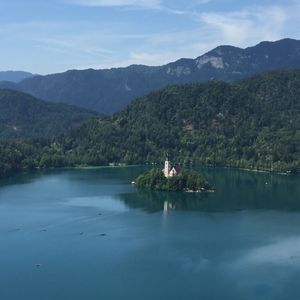 湖と山そしてお城 メルヘンチックなこの風景は忘れられないものとなります。もちろんお天気次第ですが。真ん中の教会は、小さそうに見えますが、実際はそうでもないです。