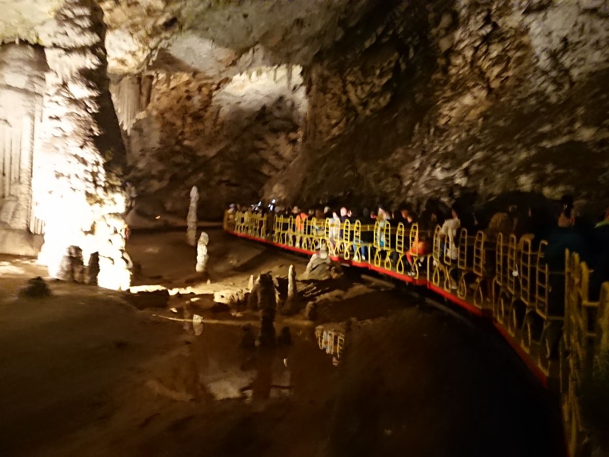 次にバスで向かったのはポストイナ鍾乳洞。まずはトロッコで地下深くまで。このトロッコがまるで遊園地のアトラクションのごとく右へ左へ、なかなかの迫力。その後、ガイドの説明とともに様々な鍾乳石を見ながら徒歩のツアー。1時間くらいだったか、けっこう歩きました。スニーカーがお薦め(ハイヒールとかはきついかも)。一生分以上の鍾乳洞を見た感じ。ガイドさんは観光時間には写真を撮ってくれ、すごくフレンドリー。満足しました。