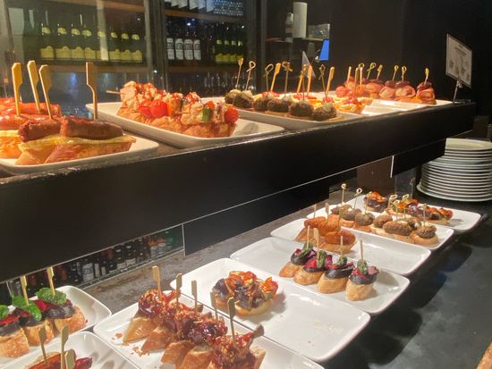 ピンチョスはタパスの一種で、一口サイズの串料理やスライスされたバケットの上に具材が乗った手軽なおつまみ。見た目もかわいい美味しそうなピンチョスをいざ堪能!お好みのものを数種類選んでお楽しみください。