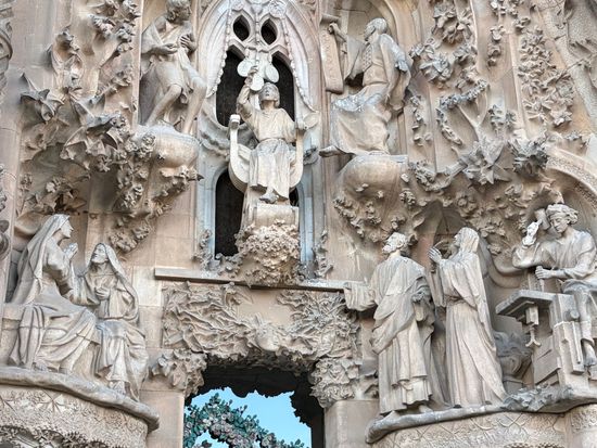 サグラダ・ファミリア南西側に位置し、1950年代に着工した受難のファサード。最後の晩餐から昇天までが表現されています。