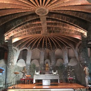 内部は想像と違っていました。そしてガウディ博物館になっており、展示されているので興味深く見られます。ガウディ建築はデザインに目が行きますが、換気や水はけなど全て考えられ機能的でもある事に驚かされます。ガウディ天才!感動しました。