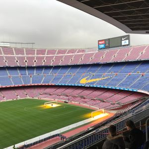 旅行日にちょうど試合があったので、サッカー少年だった夫と行きました。V IPにしようかどうしようか迷いましたが、カテゴリー1でも、間近に見れて良かったです。特にメッシのポジションに近かったので、感激しました。どちらかと言えば野球の試合には、よく行くので、スタジアムの中でグッズが買えると思っていましたが、お店が見当たらず、サンドイッチや飲み物などのお店ばかりでした。もしかしたら地下とかにあったかも知れませんが。スタジアムの外にも売店はありました。試合の会場には、ハンドバックぐらいしか荷物は持ち込めません。私たちは、午前中にお土産を買っていたので、セキュリティチェックではねられてしまいました。コインロッカーもないので、要注意です。試合は、メッシの得点を入れる場面も間近に見られてバルサの勝利でした。とても素晴らしい思い出になりました。