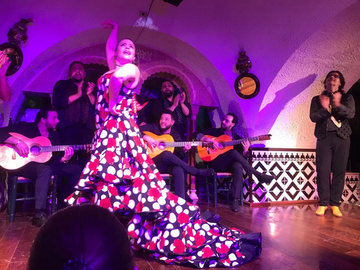 渡されたサングリアを飲みながらショーを観ました。タブラオはそこまで大きくないので、後ろの方でも十分迫力が伝わりました。撮影は禁止でしたが、最後5分間はカメラOKでした!