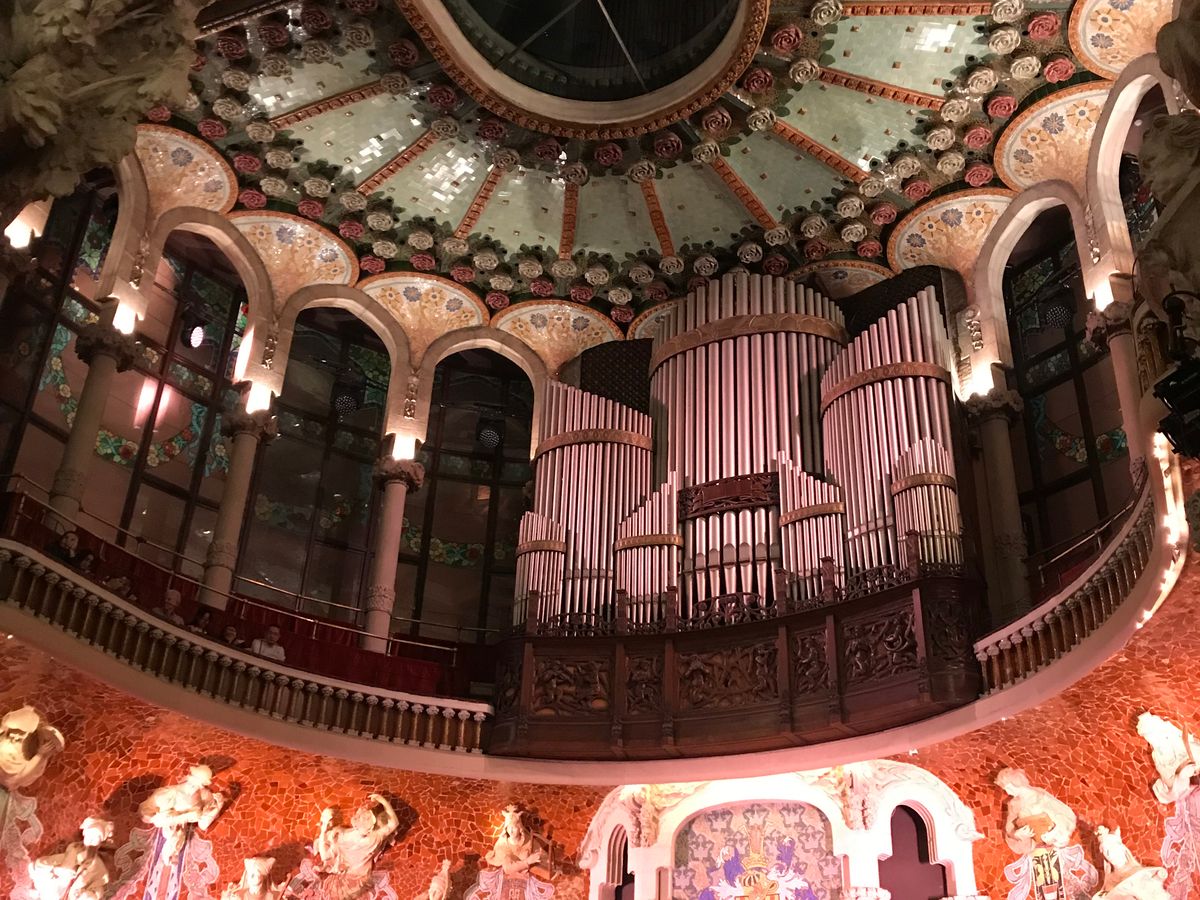 音楽会には食事をしてから行こうと思っていました。スペインは午後八時オープンのレストランが多く、食事の場所を探して食事していたら時間がなくなり、音楽堂を演奏会前にしっかり見学撮影できなかったのが残念でした。開場、開演時間を含め目的に合わせ時間配分を考えているとよいかと思います。