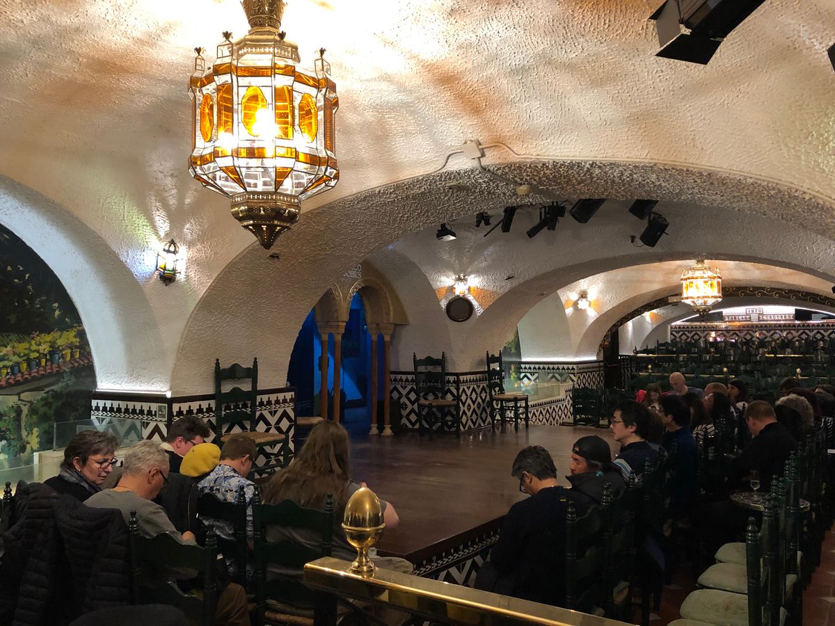 このエル・コルドベスでのフラメンコショーは低い天井と熱気溢れるステージがとても印象に残ります。行くなら食事込みのツアーが絶対的にお勧めです。座席によってはステージが見える角度に制限があり、食事込みのお客さんから先に誘導されるため、可能な限り食事込みの予約が良いと思います。その分、予算は上がりますが、食事も美味しく接客もしっかりしているので満足度が増します。集合時間前から並んでも、直前に行っても食事テーブル位置に大差はないので、そこはあまり日本人的に前乗りする必要はないと思いました。