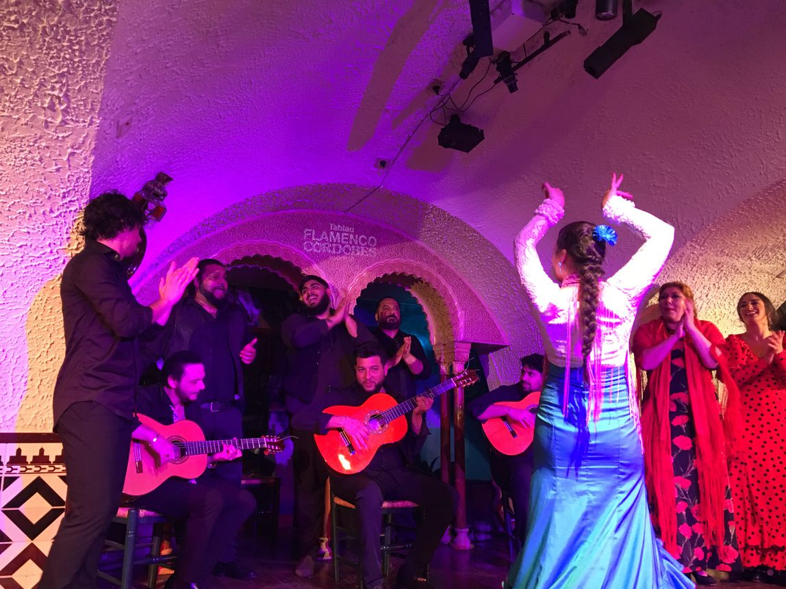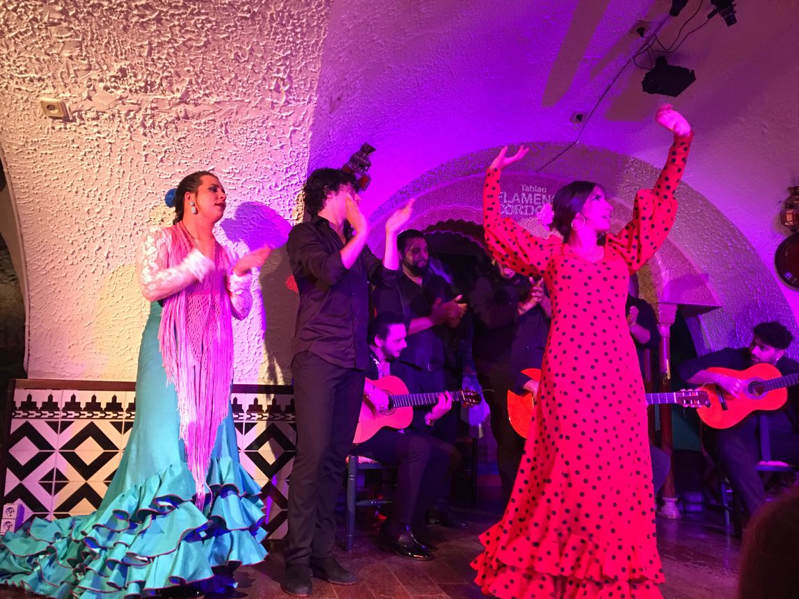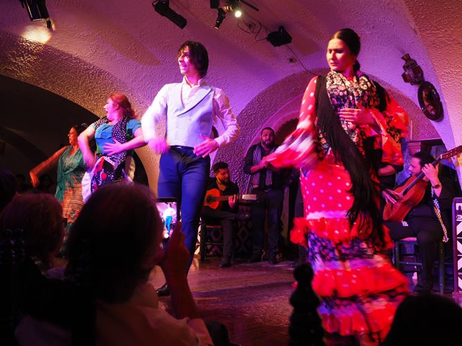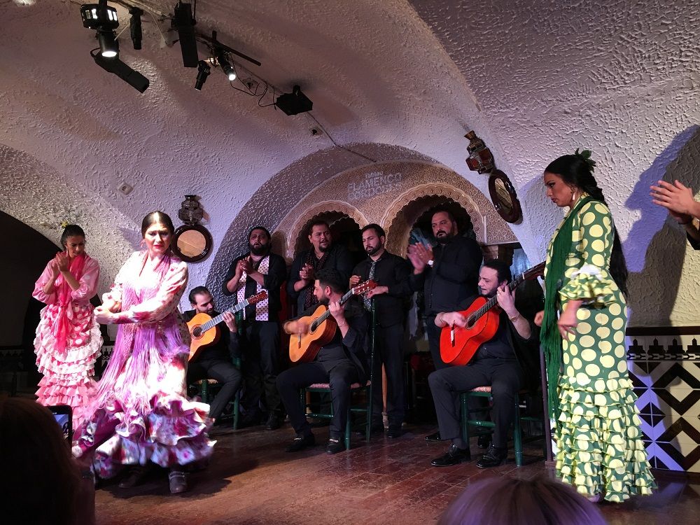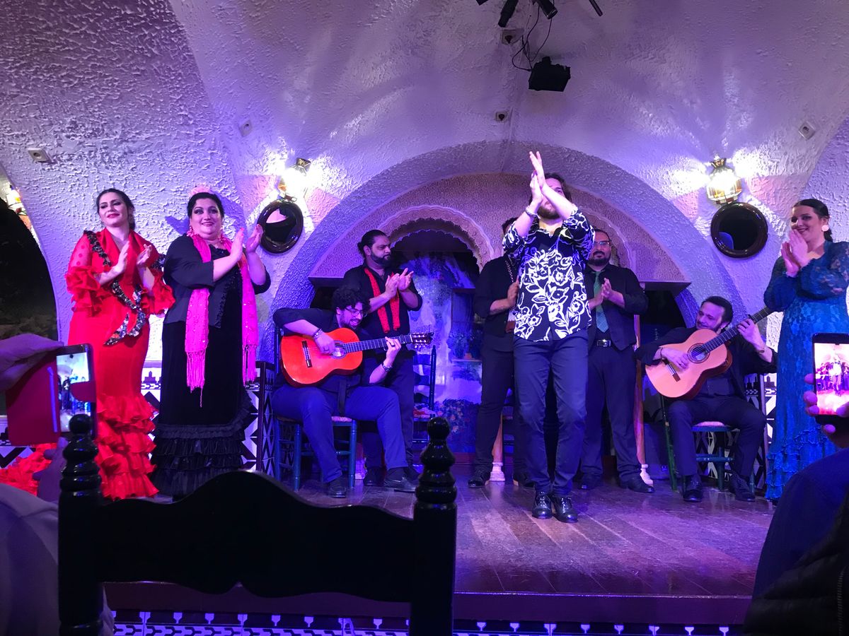 ディナー&飲み放題付きに行きました。グラナダの洞窟フラメンコと、どちらにするか迷いました。洞窟は前に行ったことがあって、間近で見れて良かったのですが、やはり初めてのほうにしました。でもこちらにして正解でした。食事のメニューも多く、味もとても美味しかったです。ゆっくり食事をしてから場所を、隣りのステージに移動してフラメンコの観賞です。かぶりつきの席で凄く興奮して見ていました。ショーの間は撮影禁止でしたが、最後に写真タイムを取ってくれて最高の写真が撮れました。