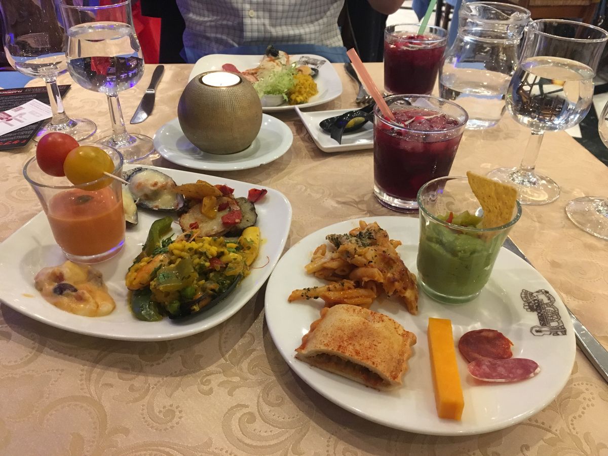 ランチを食べすぎた私たちはあまり食べれませんでしたが、種類は豊富で、食事の時はお酒は飲み放題でした。
