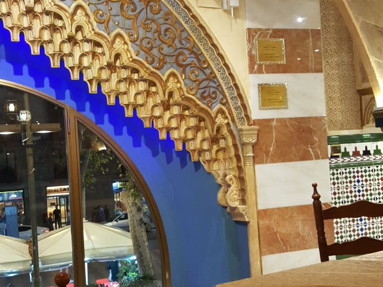 繁華街の大通りに面しているので、お店は分かりにくいところにありますが、内装はアルハンブラ風でとても綺麗です。
