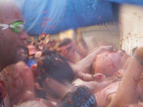 トマトは私たちは結構前の方にいたので沢山トマトを投げられました。でも、痛いのでやっぱりゴーグルは必須。出来たらシュノーケリング用の大きいのがいいと思います。