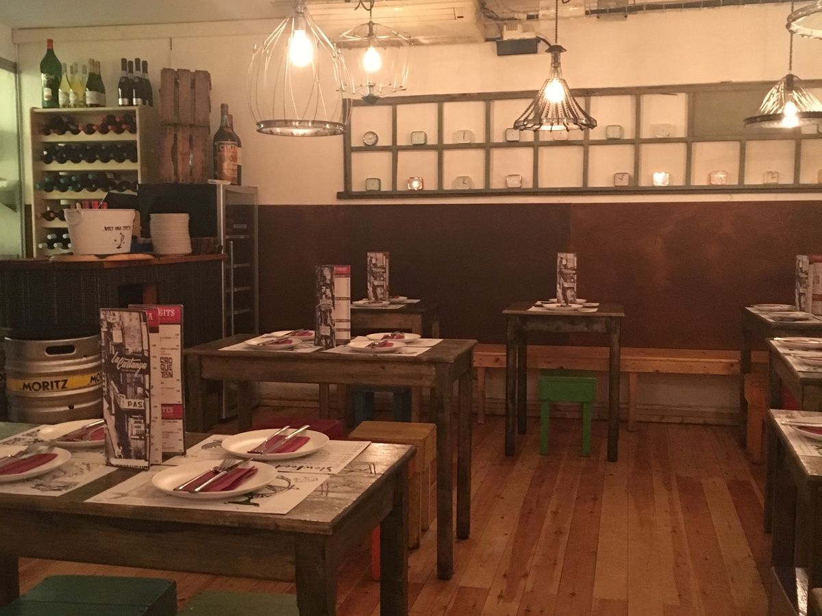 バイキング形式のお食事は、生ハムやピンチョスなど様々で、デザートも美味しかったです。飲み物は2人とも赤ワインを頼んだところ、普通にお店の自社ワインでしょうか?ポンと1本置いて行かれました(笑)食事時間は余裕の約1時間半で、ゆっくりできました。