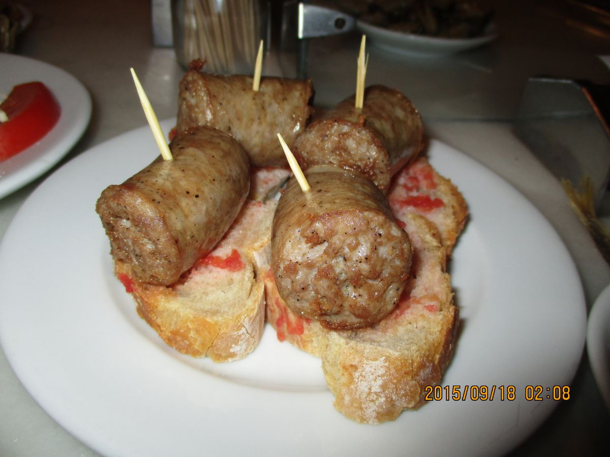 2.いわしのフリッターと,トマトのオリーブオイルがけと,ソーセージのピンチョスしかない地元の繁盛バルで,その3品。