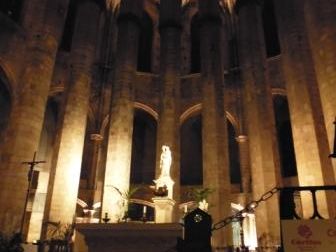 バルセロナ特有の狭い路地をスイスイと進み,途中,美術館や教会の説明も。
