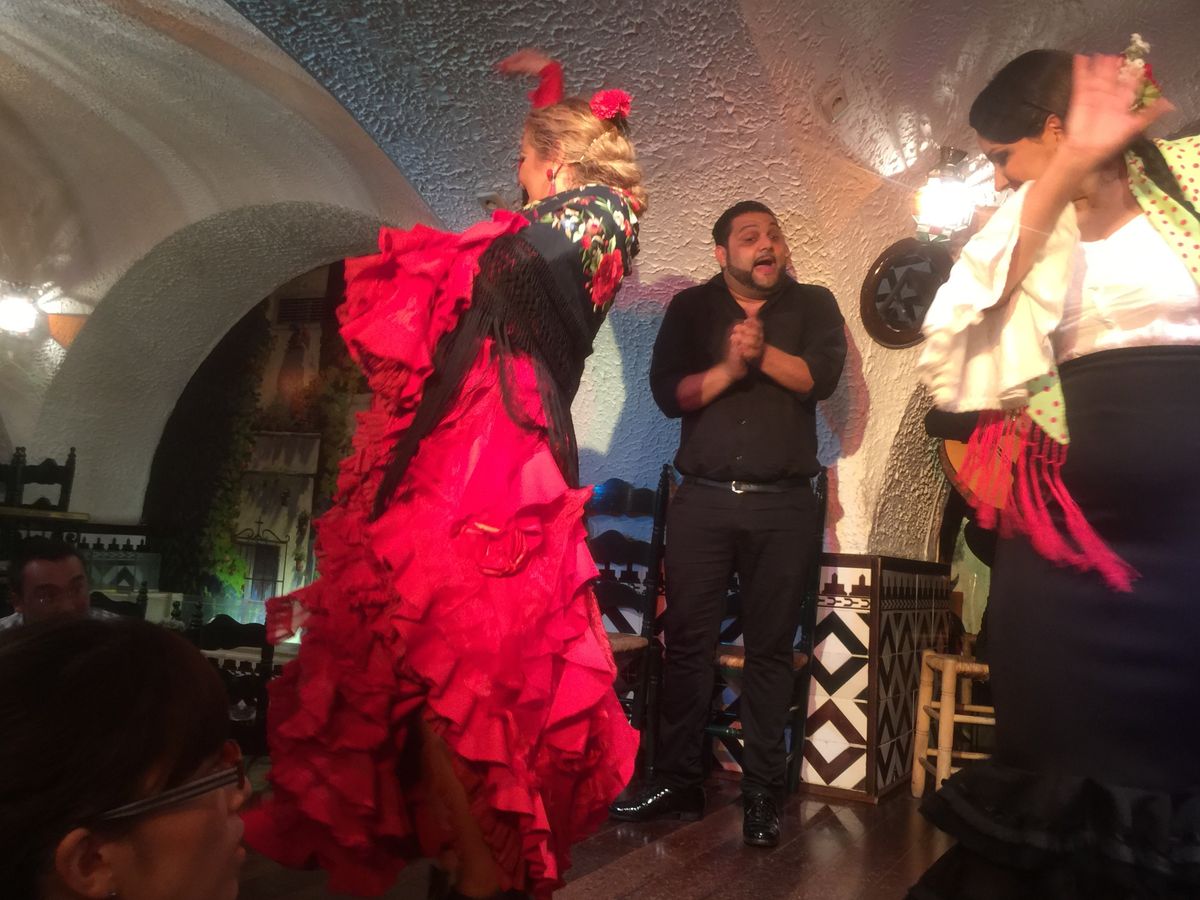 ショーは一番前の席に案内されましたが、横の席だったため、正面から見れず、ちょっと残念でした。でも目の前で見るフラメンコは迫力があり、感動しました。写真タイムもあり、観光客に対する配慮も感じられました。