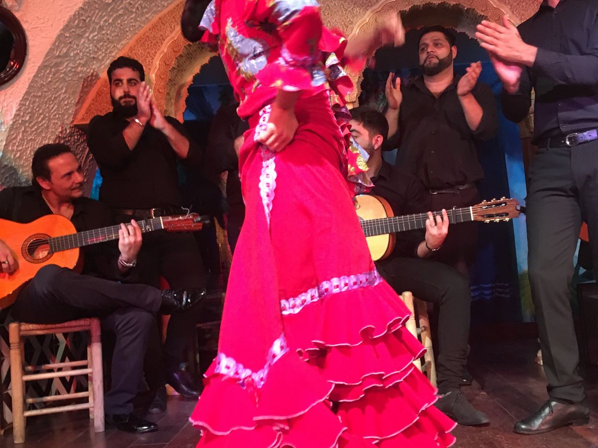 初スペインで初フラメンコでした。老舗で、ディナーのあとのショーのコースでした。料理もそこそこ美味しく、なんと飲みホでした。ショーは、それはそれは素晴らしい名だたる方達のショーらしく、かなりエキサイティングでした。