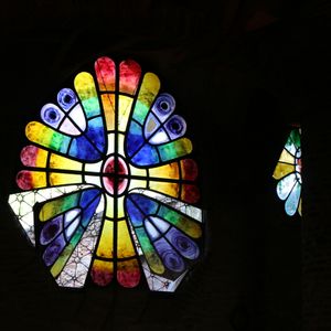 時間がタイトではあるものの、コロニア・グエルの中、またガウディ的なステンドグラスのサーキュレーションシステム等の説明がある。