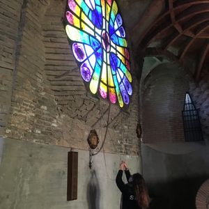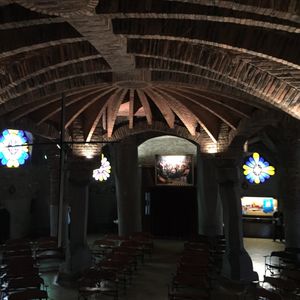コロニア・グエルは、教会の開館前に中に入って朝の清廉な空気の中でステンドグラス越しに入る光がキレイでした。