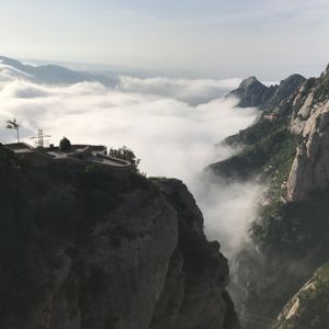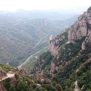 朝もやの中、バスはモンセラット奇岩群へ。ガウディ建築の曲線美を彷彿とさせる圧巻の岩山に圧倒されます。