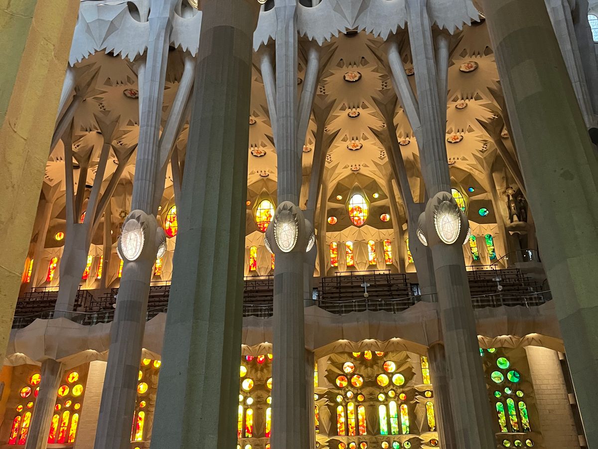 メインのサグラダファミリアも感動でした! 以前訪れたときよりも、建築が進んでいました。ステンドグラスから降り注ぐ美しい光、自然からインスピレーションを得たモチーフの数々など、素晴らしく、メインエントランスを含む完成を迎えたときにまた訪れたいと思いました。