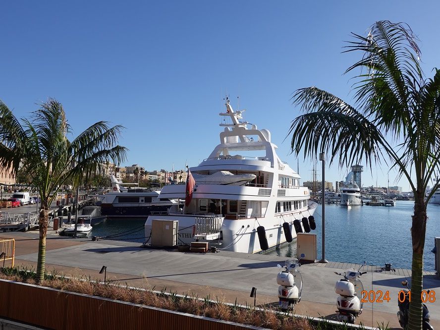 昼食は海岸に近いレストランで郷土料理のパエリアに舌鼓を打ちながら美味しく頂きました。レストランからの眺めも良くクルーザーが近くに停泊しています(持てたらいいな~)。