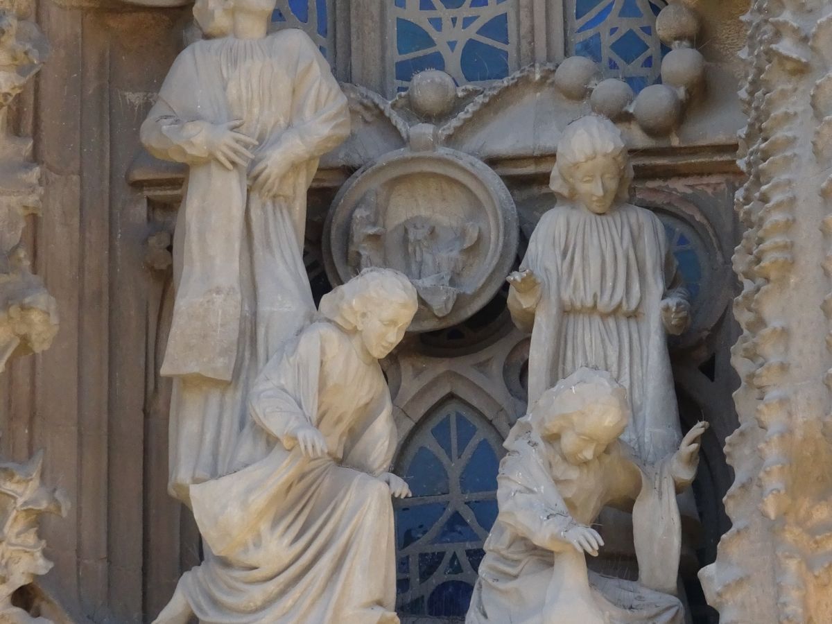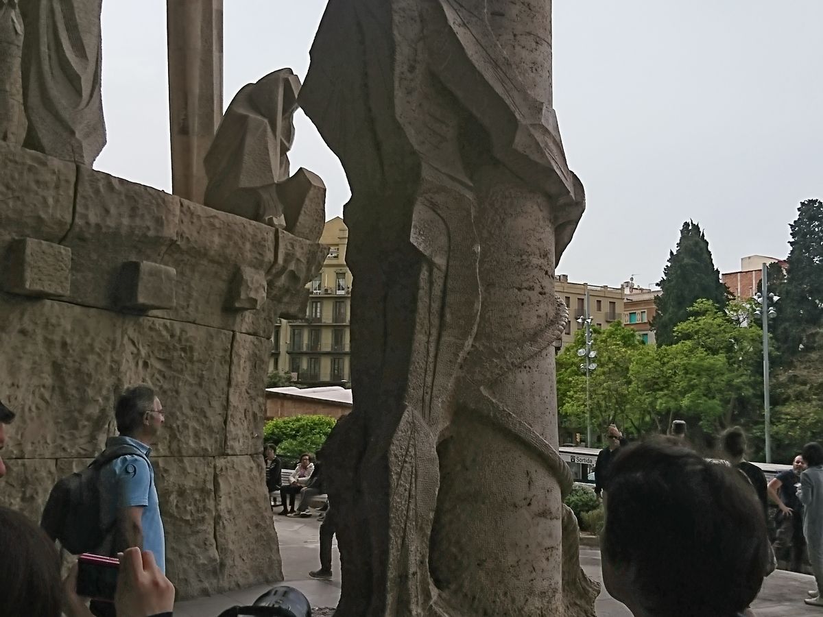 混雑する観光名所ですが、事前に予約済みのツアーなので、待つことなくサグラダファミリアに入場できました。日本語のガイドで、室内外の様々な造形物を解説していただき、建物の歴史もよく知ることができ、興味が膨らみました。